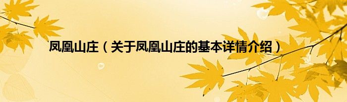 本文关于凤凰山庄的基本详情介绍就讲解完毕,希望对大家有所帮助。