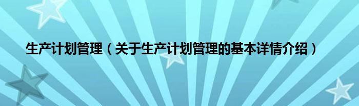 本文关于生产计划管理的基本详情介绍就讲解完毕,希望对大家有所帮助。