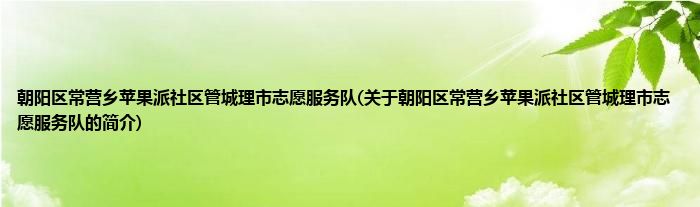 朝阳区常营乡苹果派社区管城理市志愿服务队(关于朝阳区常营乡苹果派社区管城理市志愿服务队的简介)