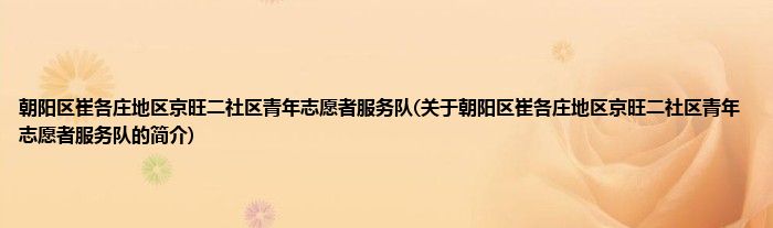 本文关于朝阳区崔各庄地区京旺二社区青年志愿者服务队的简介就讲解完毕,希望对大家有所帮助。
