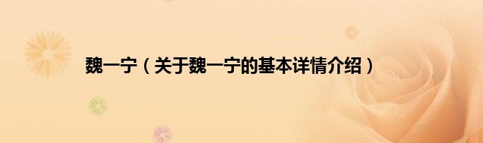 本文关于魏一宁的基本详情介绍就讲解完毕,希望对大家有所帮助。