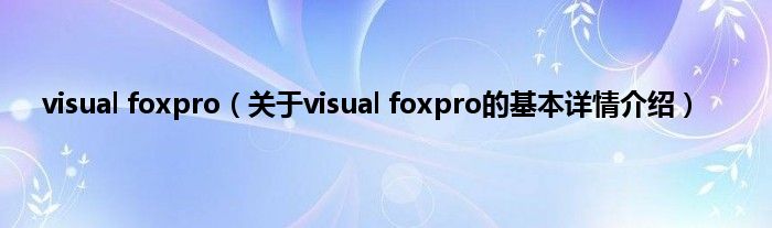 本文关于visual foxpro的基本详情介绍就讲解完毕,希望对大家有所帮助。