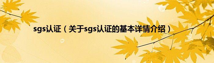 sgs认证(关于sgs认证的基本详情介绍)
