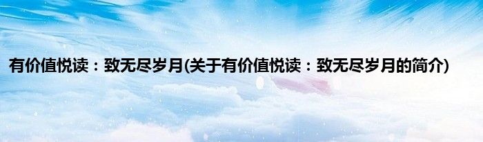 大家好,有价值悦读:致无尽岁月,关于有价值悦读:致无尽岁月的简介很多人还不知道,现在让我们一起来看看吧!