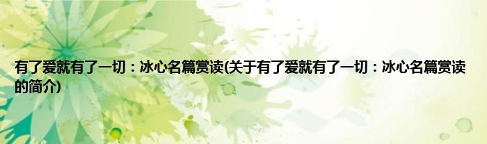 本文关于有了爱就有了一切:冰心名篇赏读的简介就讲解完毕,希望对大家有所帮助。