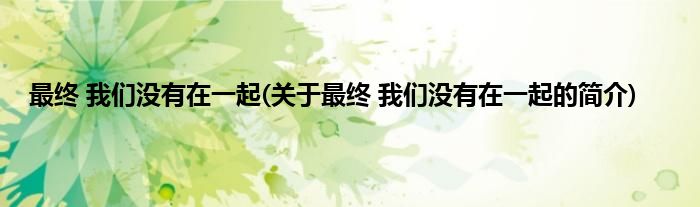 大家好,最终,我们没有在一起,关于最终,我们没有在一起的简介很多人还不知道,现在让我们一起来看看吧!