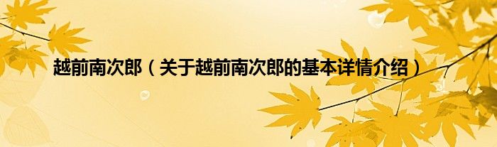 本文关于越前南次郎的基本详情介绍就讲解完毕,希望对大家有所帮助。