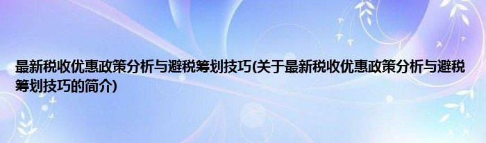 本文关于最新税收优惠政策分析与避税筹划技巧的简介就讲解完毕,希望对大家有所帮助。