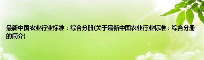 本文关于最新中国农业行业标准:综合分册的简介就讲解完毕,希望对大家有所帮助。