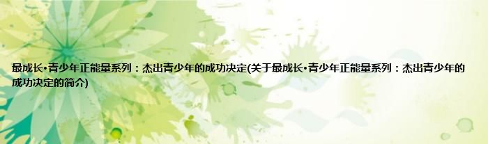 本文关于最成长·青少年正能量系列:杰出青少年的成功决定的简介就讲解完毕,希望对大家有所帮助。