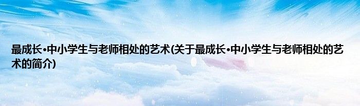 本文关于最成长·中小学生与老师相处的艺术的简介就讲解完毕,希望对大家有所帮助。