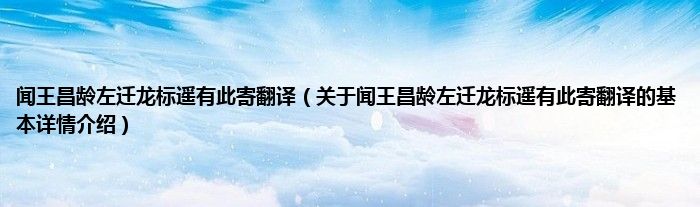本文关于闻王昌龄左迁龙标遥有此寄翻译的基本详情介绍就讲解完毕,希望对大家有所帮助。