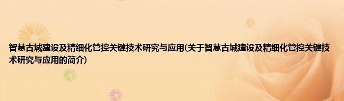 智慧古城建设及精细化管控关键技术研究与应用(关于智慧古城建设及精细化管控关键技术研究与应用的简介)