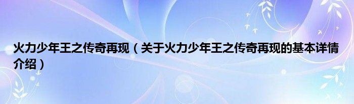 本文关于火力少年王之传奇再现的基本详情介绍就讲解完毕,希望对大家有所帮助。