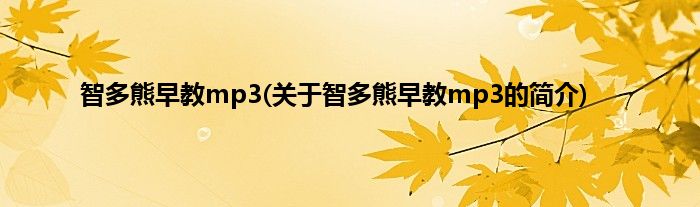 本文关于智多熊早教mp3的简介就讲解完毕,希望对大家有所帮助。