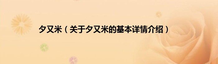 本文关于夕又米的基本详情介绍就讲解完毕,希望对大家有所帮助。
