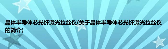 本文关于晶体半导体芯光纤激光拉丝仪的简介就讲解完毕,希望对大家有所帮助。