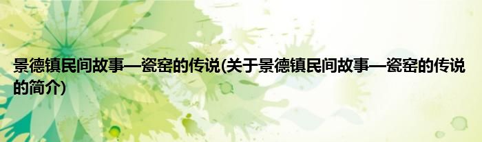 本文关于景德镇民间故事—瓷窑的传说的简介就讲解完毕,希望对大家有所帮助。