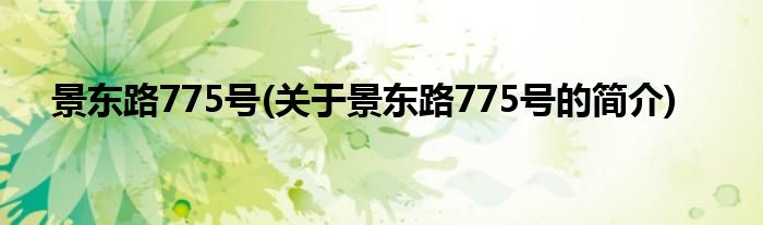 本文关于景东路775号的简介就讲解完毕,希望对大家有所帮助。