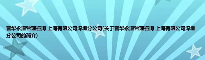 大家好,普华永道管理咨询 上海有限公司深圳分公司,关于普华永道管理咨询 上海有限公司深圳分公司的简介很多人还不知道,现在让我们一起来看看吧!
