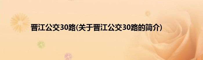 本文关于晋江公交30路的简介就讲解完毕,希望对大家有所帮助。