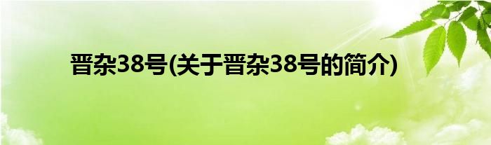 本文关于晋杂38号的简介就讲解完毕,希望对大家有所帮助。