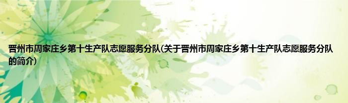 本文关于晋州市周家庄乡第十生产队志愿服务分队的简介就讲解完毕,希望对大家有所帮助。