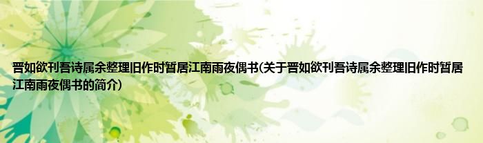晋如欲刊吾诗属余整理旧作时暂居江南雨夜偶书(关于晋如欲刊吾诗属余整理旧作时暂居江南雨夜偶书的简介)