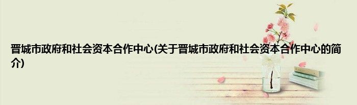 大家好,晋城市政府和社会资本合作中心,关于晋城市政府和社会资本合作中心的简介很多人还不知道,现在让我们一起来看看吧!