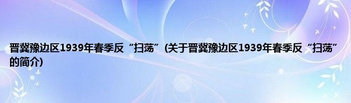 大家好,晋冀豫边区1939年春季反“扫荡”,关于晋冀豫边区1939年春季反“扫荡”的简介很多人还不知道,现在让我们一起来看看吧!