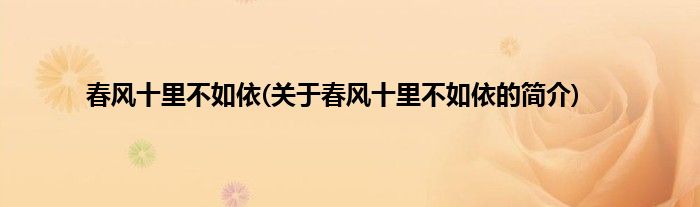 本文关于春风十里不如依的简介就讲解完毕,希望对大家有所帮助。