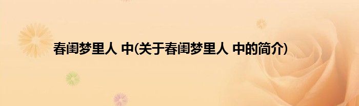 大家好,春闺梦里人 中,关于春闺梦里人 中的简介很多人还不知道,现在让我们一起来看看吧!