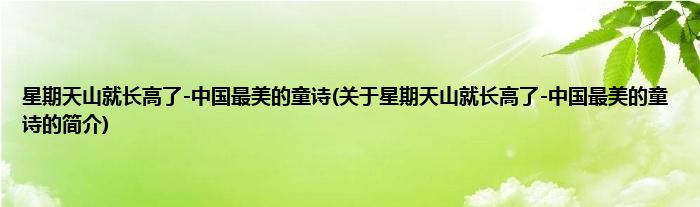本文关于星期天山就长高了-中国最美的童诗的简介就讲解完毕,希望对大家有所帮助。
