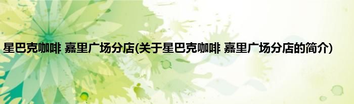 本文关于星巴克咖啡 嘉里广场分店的简介就讲解完毕,希望对大家有所帮助。
