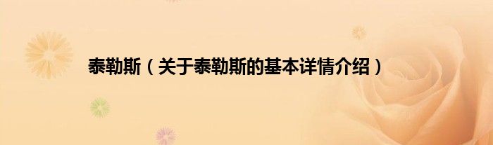 大家好我是小蝌蚪,泰勒斯,关于泰勒斯的基本详情介绍很多人还不知道,那么现在让我们一起来看看吧!