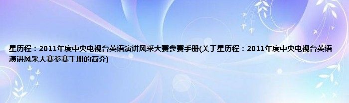 本文关于星历程:2011年度中央电视台英语演讲风采大赛参赛手册的简介就讲解完毕,希望对大家有所帮助。