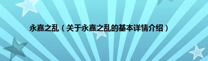 本文关于永嘉之乱的基本详情介绍就讲解完毕,希望对大家有所帮助。