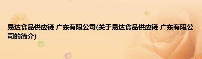 大家好,易达食品供应链 广东有限公司,关于易达食品供应链 广东有限公司的简介很多人还不知道,现在让我们一起来看看吧!