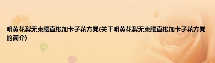本文关于明黄花梨无束腰直枨加卡子花方凳的简介就讲解完毕,希望对大家有所帮助。