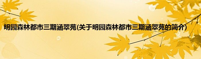 大家好,明园森林都市三期涵翠苑,关于明园森林都市三期涵翠苑的简介很多人还不知道,现在让我们一起来看看吧!