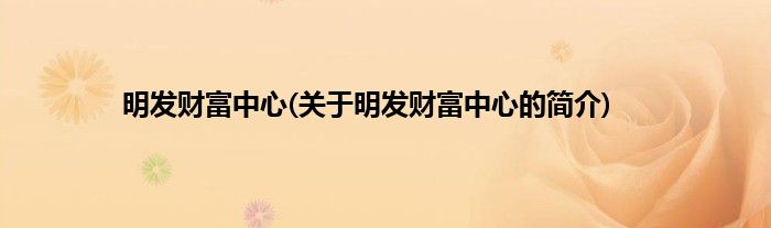 大家好,明发财富中心,关于明发财富中心的简介很多人还不知道,现在让我们一起来看看吧!