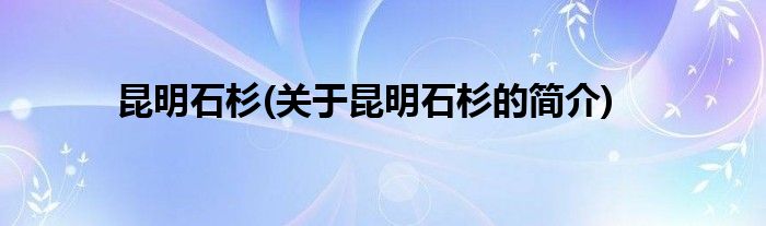 本文关于昆明石杉的简介就讲解完毕,希望对大家有所帮助。