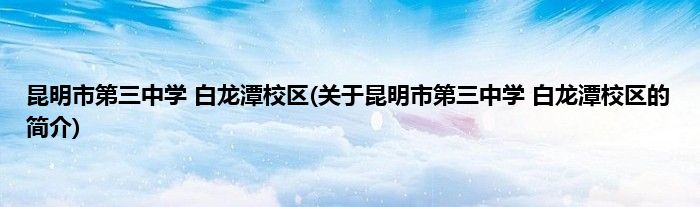 大家好,昆明市第三中学 白龙潭校区,关于昆明市第三中学 白龙潭校区的简介很多人还不知道,现在让我们一起来看看吧!