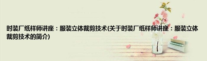 大家好,时装厂纸样师讲座:服装立体裁剪技术,关于时装厂纸样师讲座:服装立体裁剪技术的简介很多人还不知道,现在让我们一起来看看吧!