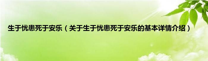 本文关于生于忧患死于安乐的基本详情介绍就讲解完毕,希望对大家有所帮助。