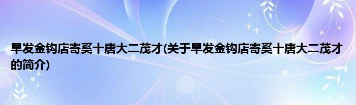早发金钩店寄奚十唐大二茂才(关于早发金钩店寄奚十唐大二茂才的简介)