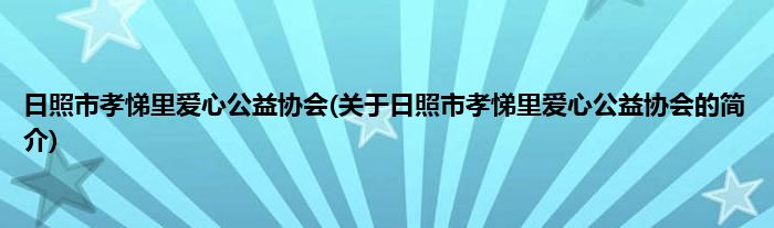 本文关于日照市孝悌里爱心公益协会的简介就讲解完毕,希望对大家有所帮助。