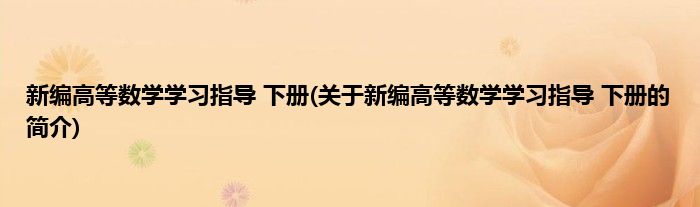 1、 《新编高等数学学习指导(下册)》是一本图书。