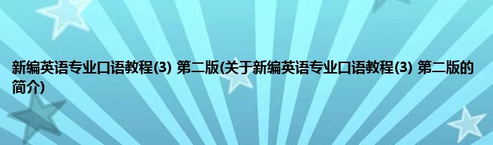 1、 《新编英语专业口语教程(3)(第二版)》是2011年出版的图书。