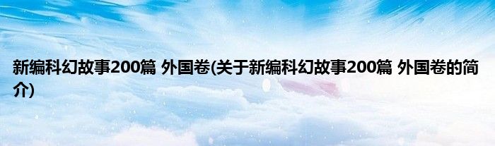 大家好,新编科幻故事200篇 外国卷,关于新编科幻故事200篇 外国卷的简介很多人还不知道,现在让我们一起来看看吧!